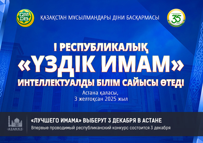 Духовное управление мусульман Казахстана приглашает вас на I Республиканский интеллектуальный конкурс «Үздік имам», который состоится 3 декабря 2025 года в городе Астана.