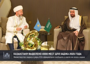 В ходе встречи Верховного муфтия с министром хаджа и умры КСА было официально сообщено о выделении Республике Казахстан 4000 мест на сезон хаджа 2026 года. Верховный муфтий отметил важность обеспечения безопасности паломников, повышения качества услуг, совершенствования системы размещения и транспор...