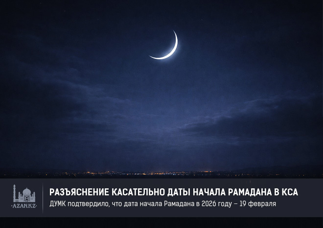 Уважаемый джамаат, призываем вас следовать фетве Духовного управления мусульман Казахстана, в соответствии с которой первый таравих намаз состоится 18 февраля, а первый день поста в месяц Рамадан – 19 февраля.