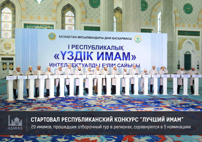 Сегодня в мечети «Хазрет Султан» в Астане официально стартовал I Республиканский интеллектуальный конкурс «Лучший имам». Состязание началось с чтения аятов Священного Корана, после чего Верховный муфтий Наурызбай кажы Таганулы произнёс дуа.