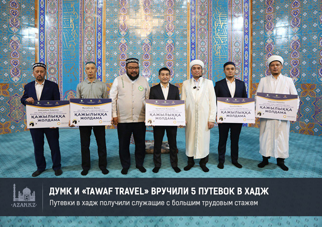 В Центральной мечети г. Алматы были вручили 5 путевок в хадж