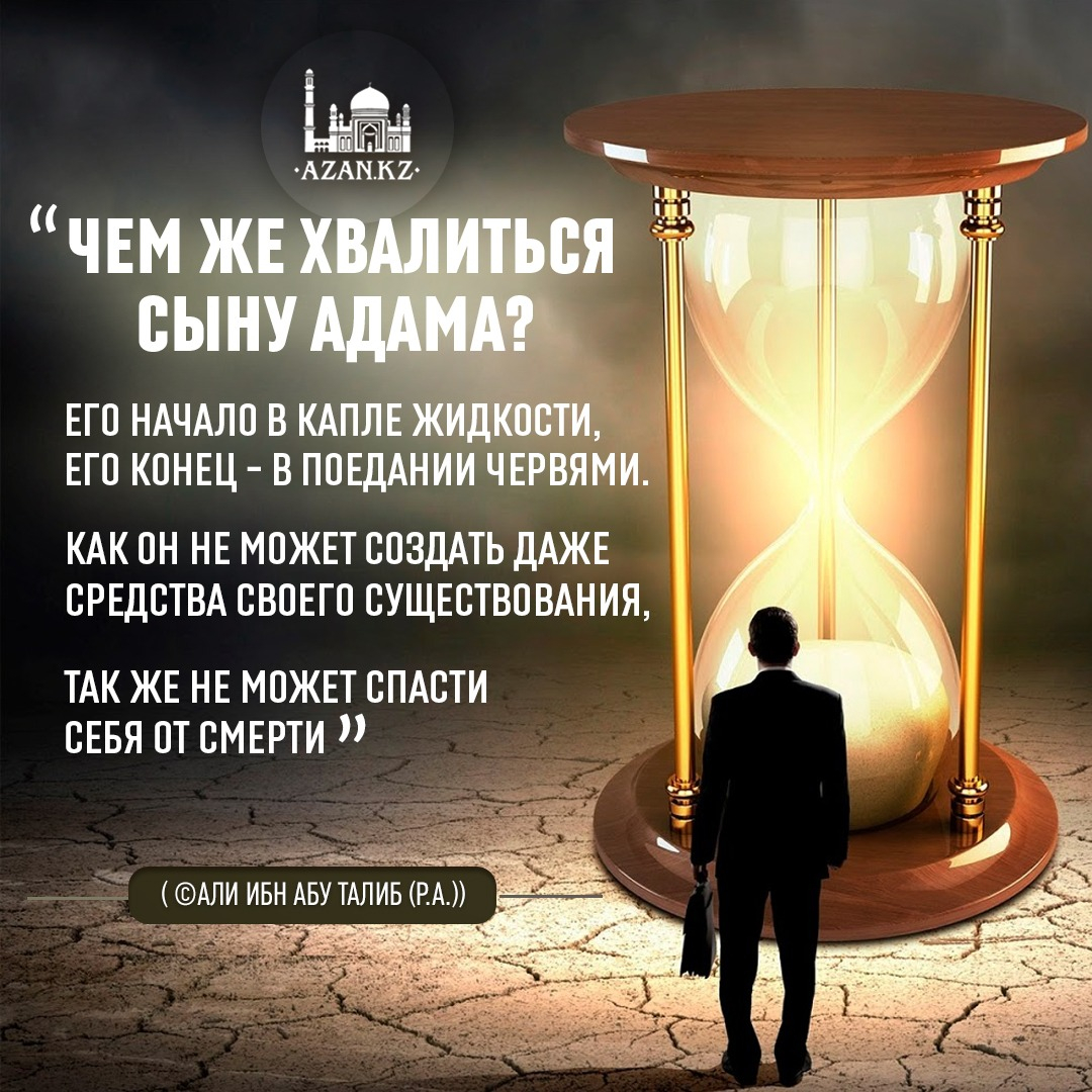 Чем же хвалиться сыну Адама? Его начало в капле жидкости, его конец в поедании червями. Как он не может создать даже средства своего существования, так же не может спасти себя от смерти.