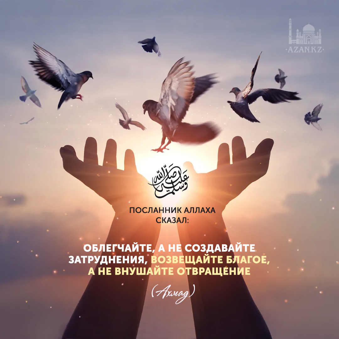 «Облегчайте, а не создавайте затруднения, возвещайте благое, а не внушайте отвращение (к Исламу)». (Ахмад).