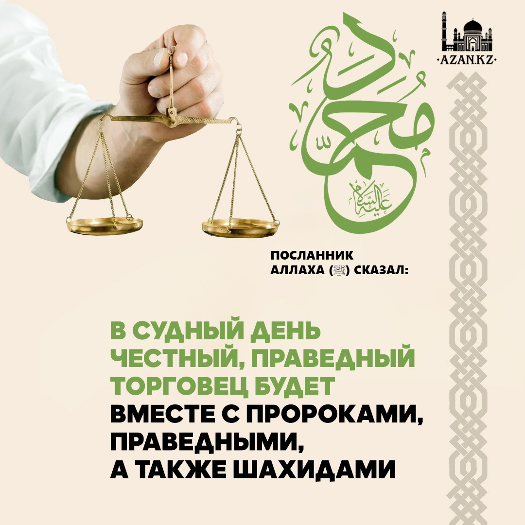 «В Судный день честный, праведный торговец будет вместе с Пророками, праведными, а также шахидами».
