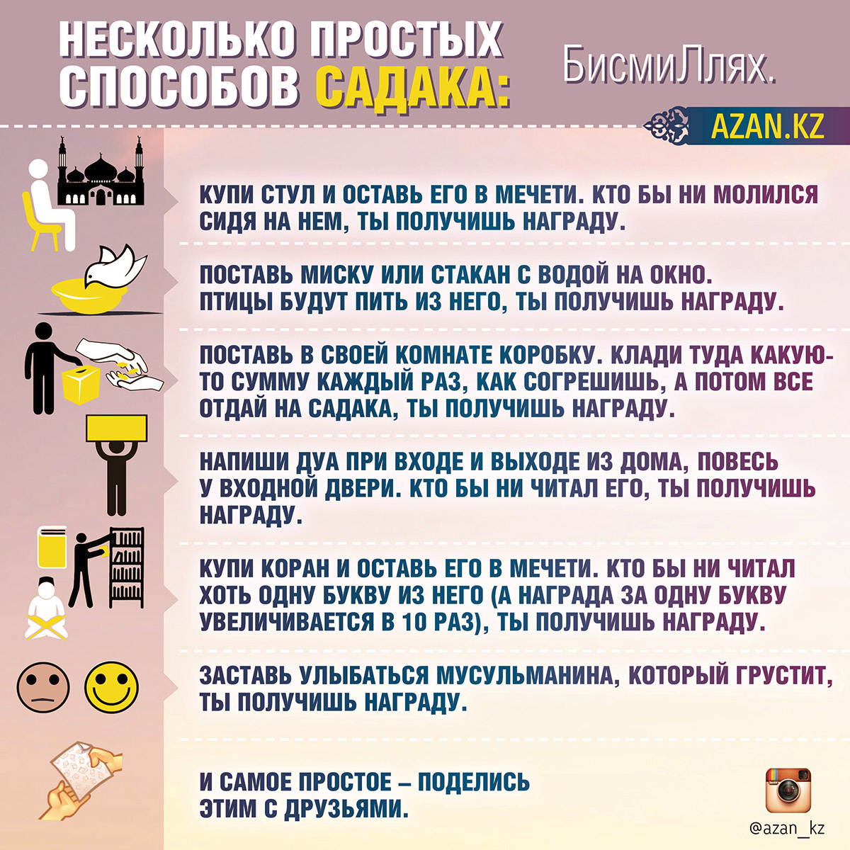 В Рамадан награда за благие дела увеличивается во много раз. Спешите совершать добрые дела.