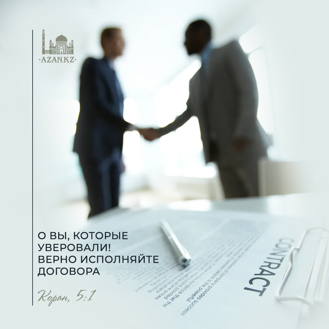 «О вы, которые уверовали! Верно исполняйте договора». (Сура «Аль-Маида», 1-аят).