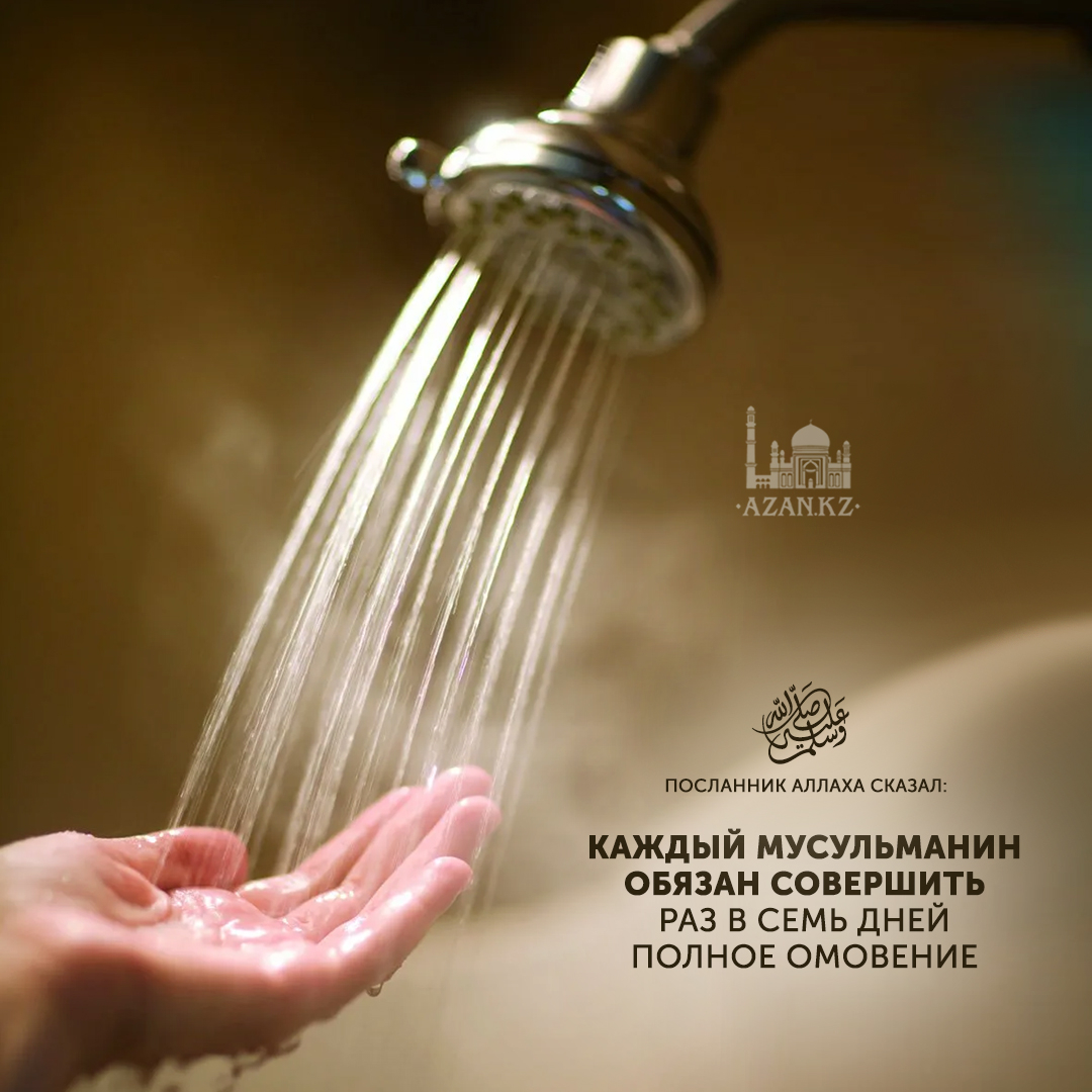 «Каждый мусульманин обязан совершить раз в семь дней полное омовение, когда ему следует вымыть голову и тело» (Бухари).