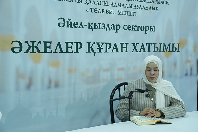 Алматы қаласы Алмалы ауданы «Төле би» мешітіндегі әйел-қыздар секторына қарасты әжелер қауымы Құран хатым батасын жасады.