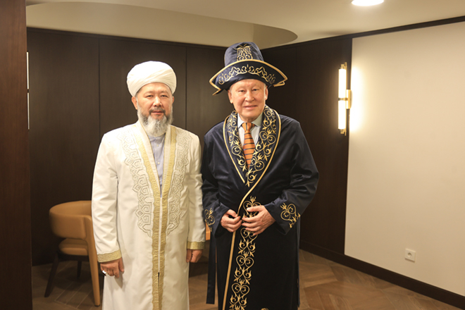 Өз кезегінде Бас мүфти мерейтой иесіне құрмет көрсетіп, иығына шапан жауып, ақжарма тілегін білдірді. Кездесу барысында руханият, ғылым және ұлттық құндылықтар төңірегінде пікір алмасу болып, ел бірлігі мен жастар тәрбиесінің маңызы туралы әңгіме өрбіді.