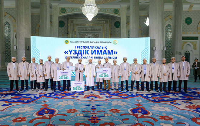 БАС МҮФТИ І РЕСПУБЛИКАЛЫҚ «ҮЗДІК ИМАМ» ИНТЕЛЛЕКТУАЛДЫ БІЛІМ САЙЫСЫНЫҢ ЖЕҢІМПАЗДАРЫН МАРАПАТТАДЫ