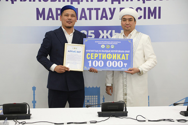 Қорытынды жылдық есеп жиынында Алматы қаласының бас имамы Төлеби Оспан мүфтияттың 35 жылдық мерейтойына орай жыл бойы белсенділік танытып, дін қызметіне сүбелі үлес қосқан бірқатар имам-ұстаздарды қаржылай сыйақымен және алғыс хатпен марапаттады. Атап айтсақ,