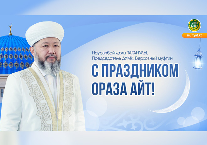Пусть будет благословенен праздник Ораза айт! Желаю каждому дому счастья и достатка, единства и мира. Пусть Всевышний Аллах даст возможность нам всем благополучно встретить следующий Рамазан и удостоит великой награды. Пусть наш народ пребудет в благополучии, страна – в спокойствии, а наша независимость будет вечной! Аминь!