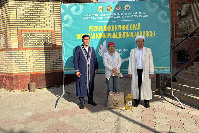 Ұлттық мереке Республика күніне орай Алматы қаласы Түрксіб ауданындағы «Фирали Ферғанұлы» мешітінде 60 отбасыға азық-түлік түрінде көмек көрсетілді. Бұл игі іс-шараны «Зекет және қайырымдылық» қоры ұйымдастырды. Шараға Алматы қаласы бойынша «Зекет және қайырымдылық» қорының жауапты маманы Бауыржан Көптілеуов арнайы қатысып, жиналған жұртшылықты Алматы қаласының бас имамы Төлеби Дәділұлының Республика күнімен құттықтау сәлемін жеткізді. Сондай-ақ Түрксіб ауданының бас имамы Ержан Абдраманов садақаның сауабы туралы Пайғамбарымыздың (оған Алланың салауаты мен сәлемі болсын) хадисін айтып, жиналғандарға насихат айтты. Осындай сауапты іске үлес қосқан барша жандарға Алла Тағала разы болсын!