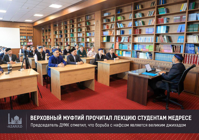 Верховный муфтий Наурызбай кажы Таганулы специально посетил мужское отделение медресе-колледжа «Астана» в столице и прочитал учащимся лекцию на тему: «Пути борьбы с нафсом».