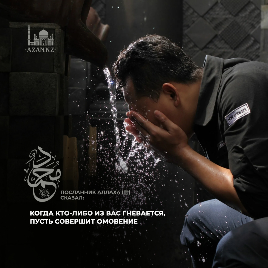 «Гнев от шайтана, а шайтан сотворен из огня, и, поистине, огонь тушат водой. Посему, когда кто-либо из вас гневается, пусть совершит омовение». (Абу Дауд).