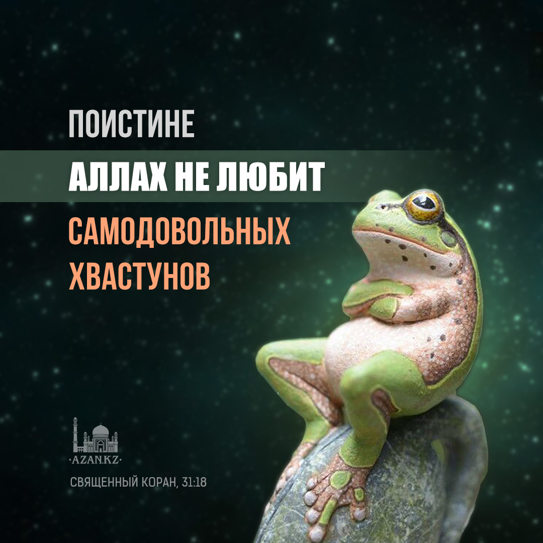 «Не отворачивайся от людей с высокомерием и не ходи по земле надменно. Поистине, Аллах не любит самодовольных хвастунов».