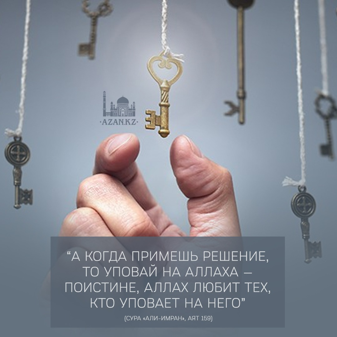 «А когда примешь решение, то уповай на Аллаха —поистине, Аллах любит тех, кто уповает на Него». (Сура «Али-Имран», аят 159)