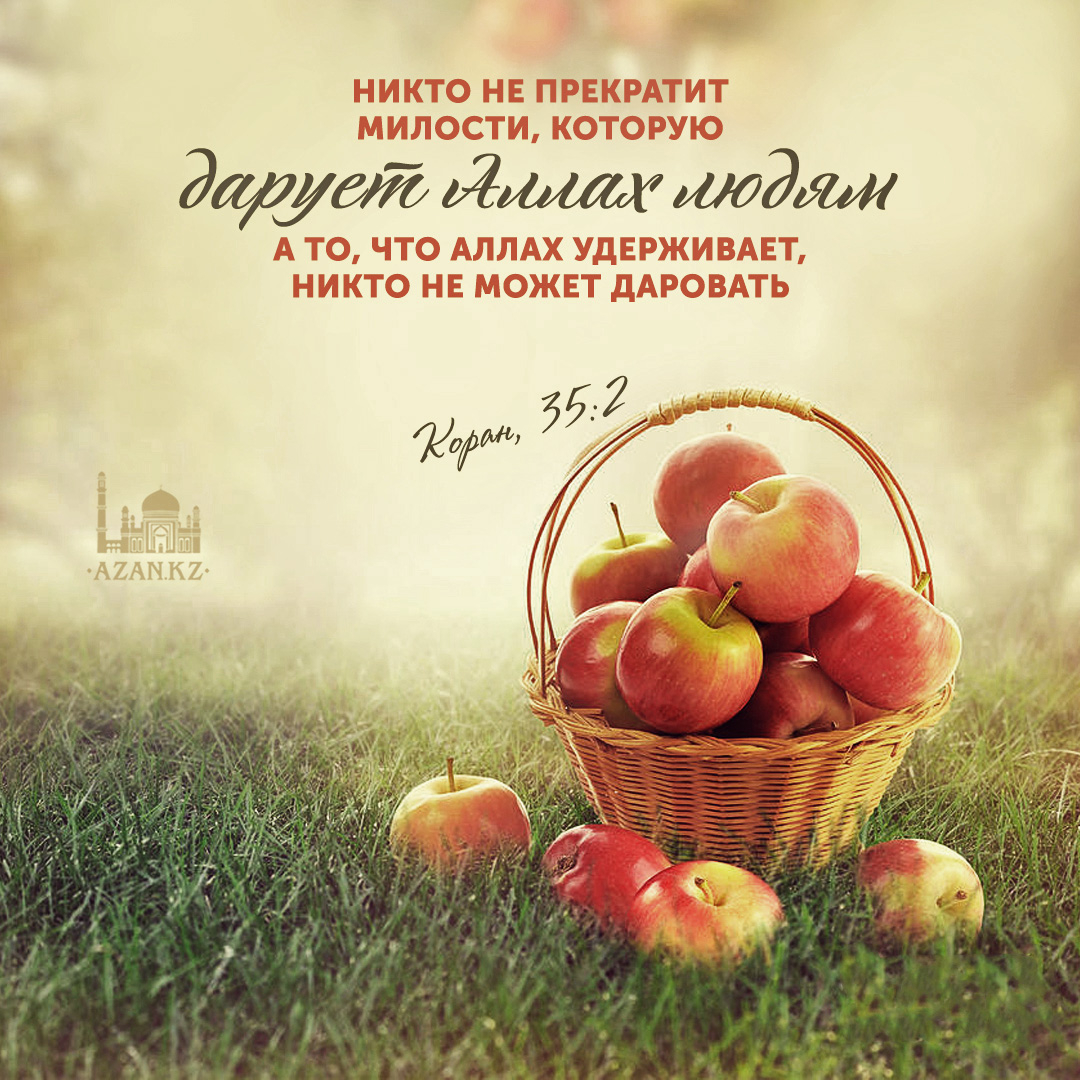 «Никто не прекратит милости, которую дарует Аллах людям, а то, что Аллах удерживает, никто не может даровать, помимо Него, ибо Он — великий, мудрый». (35:2).