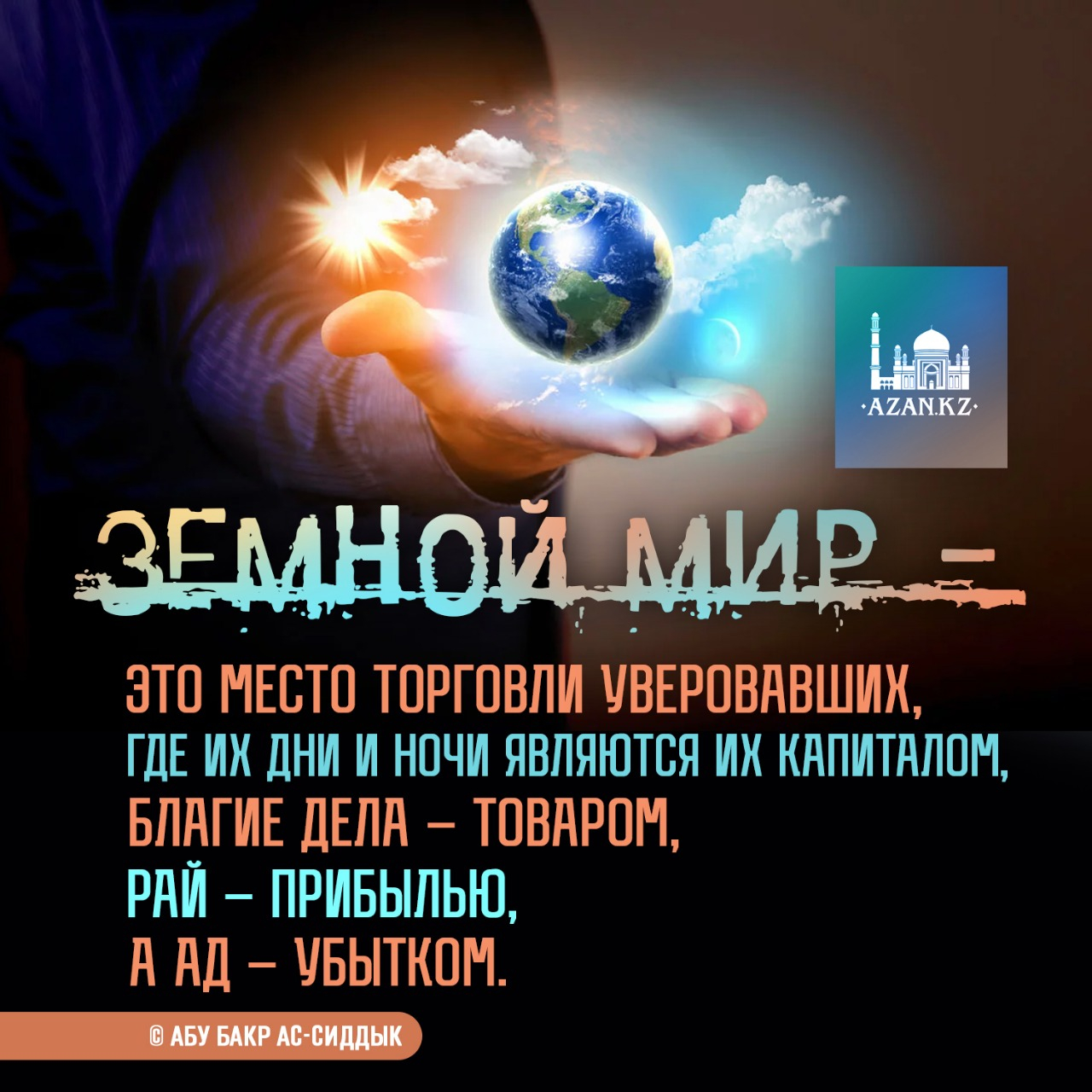 Земной мир – это место торговли увероваваших, где их дни и ночи являются их капиталом, благие дела – товаром, рай – прибылью, а ад – убытком.