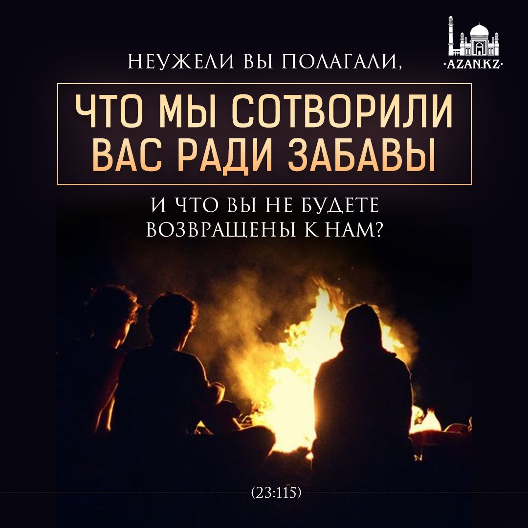 «Неужели вы полагали, что Мы сотворили вас ради забавы и что вы не будете возвращены к Нам?» (23:115).