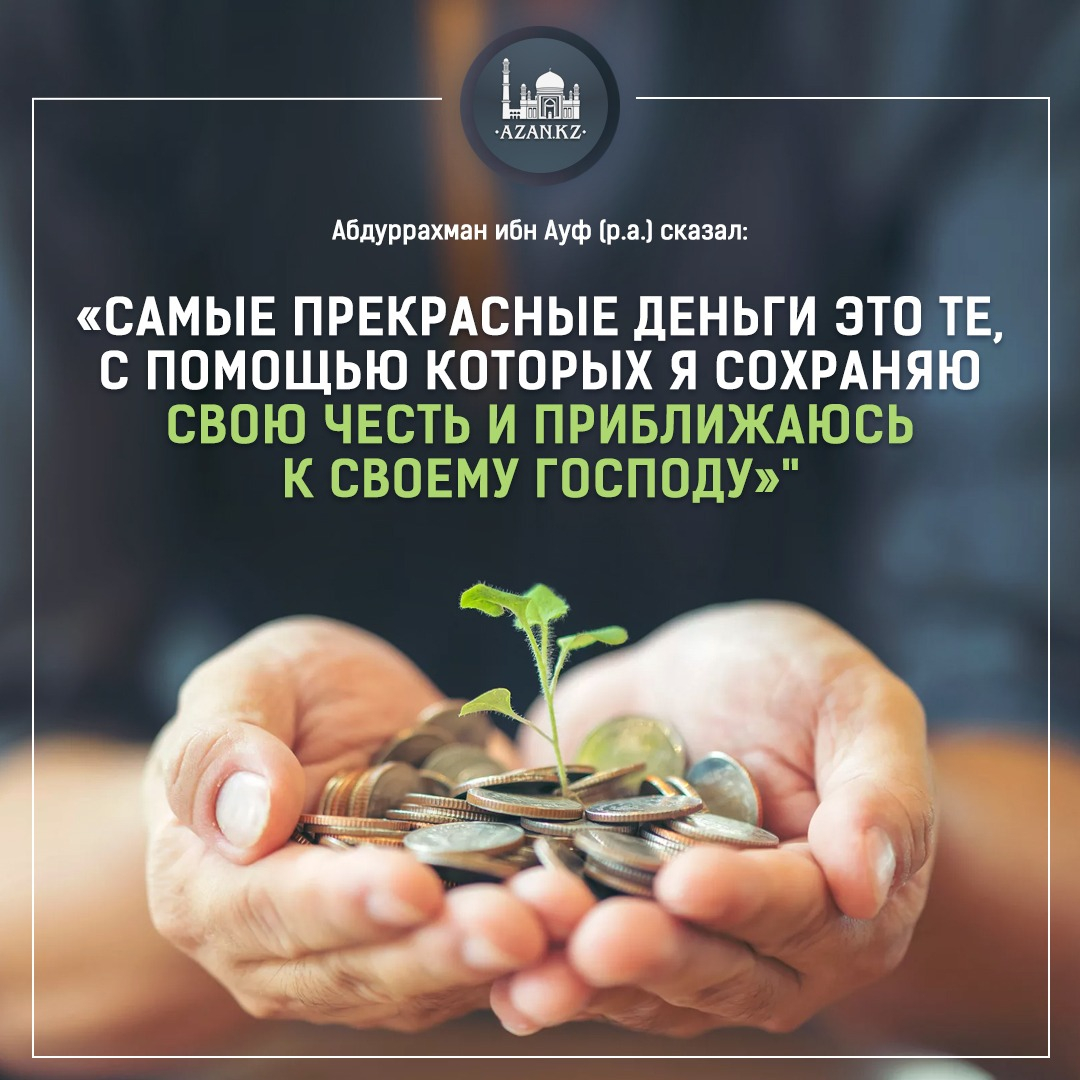 Сподвижник Абдуррахман ибн Ауф, да будет доволен им Аллах, сказал: «Самые прекрасные деньги это те, с помощью которых я сохраняю свою честь и приближаюсь к своему Господу».