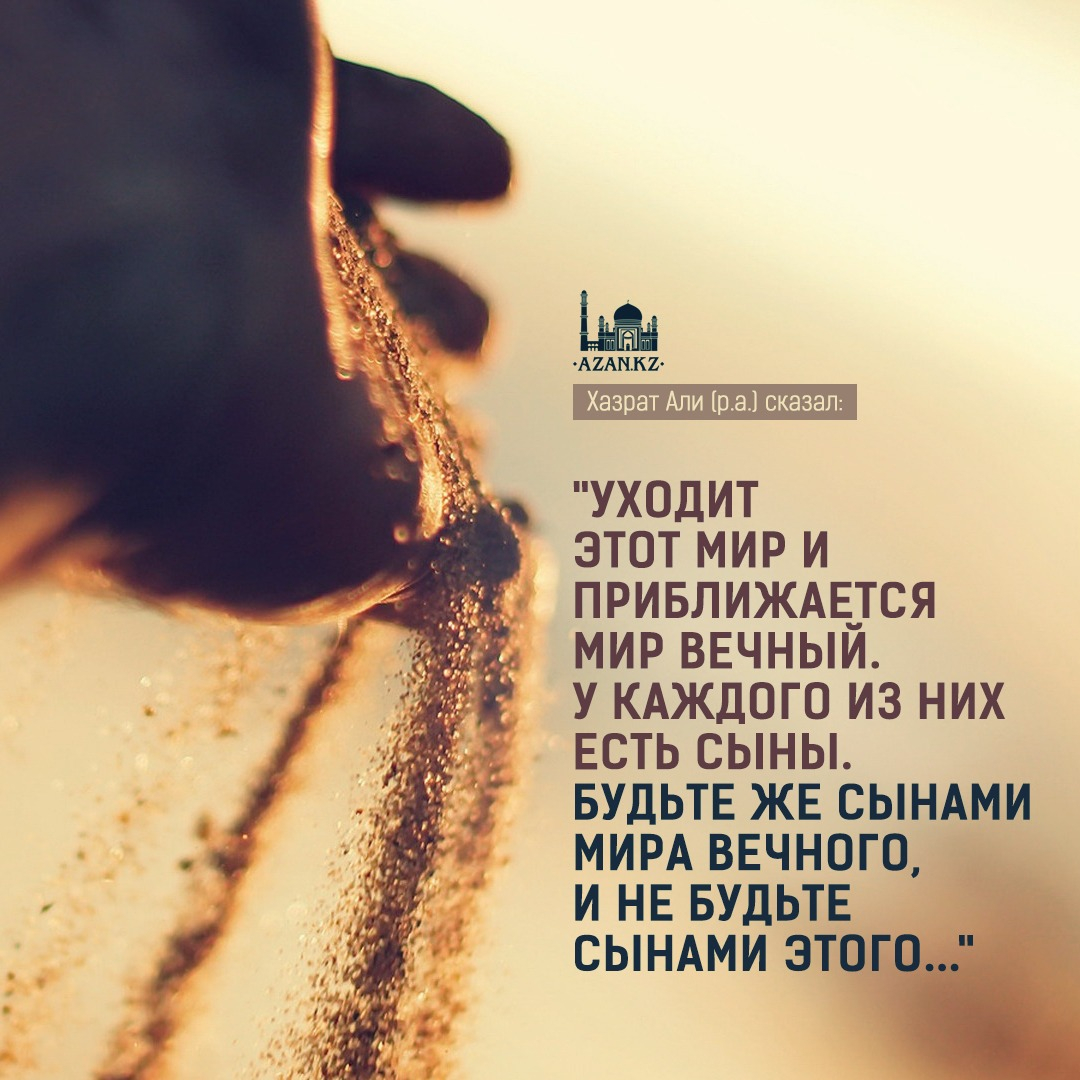«Уходит этот мир и приближается мир вечный. У каждого из них есть сыны. Будьте же сынами мира вечного, и не будьте сынами этого. Ибо, поистине, сегодня дела и нет расчета, а завтра расчет, и не будет дел».