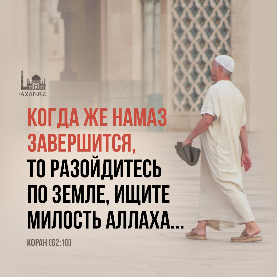 «Когда же намаз завершится, то разойдитесь по земле, ищите милость Аллаха и часто поминайте Его, – быть может, вы преуспеете». (62:10)