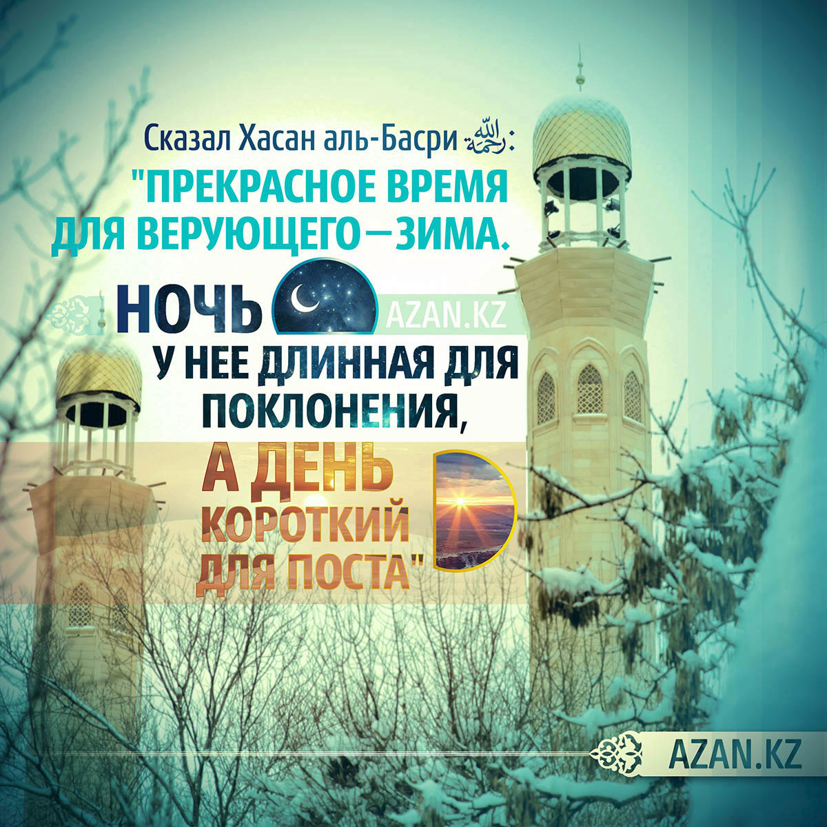 «Прекрасное время для верующего – зима. Ночь у нее длинная – для поклонения, а день короткий – для поста». (Хасан аль Басри)