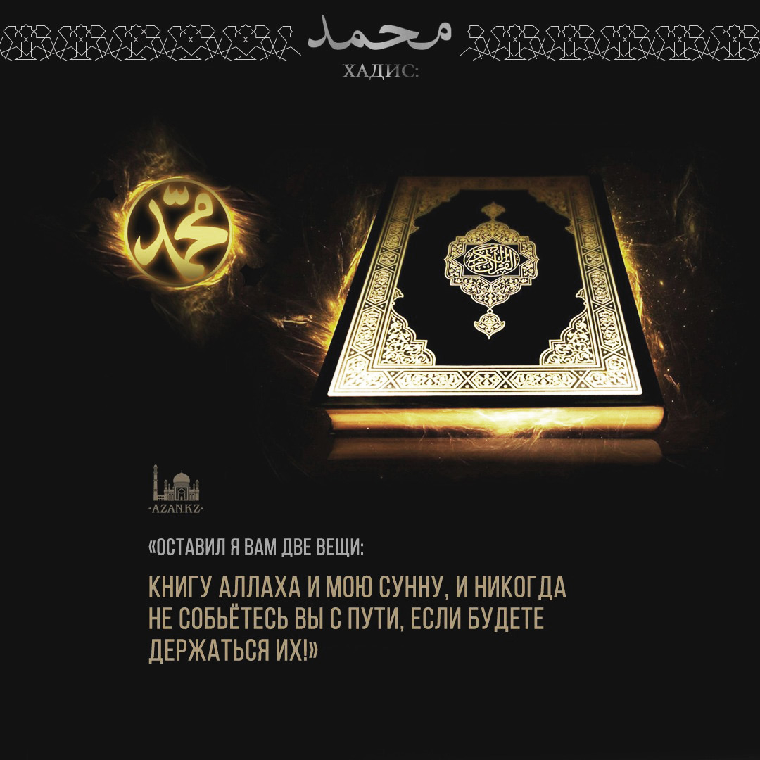 «Оставил я вам две вещи: Книгу Аллаха и мою сунну, и никогда не собьётесь вы с пути, если будете держаться их!»