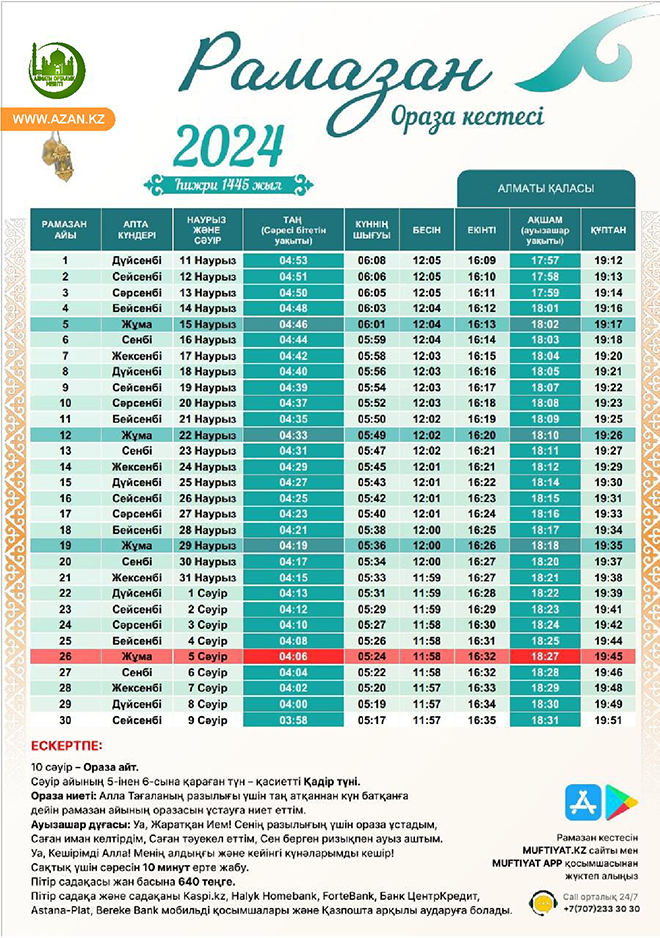 ОРАЗА КЕСТЕСІ 2024