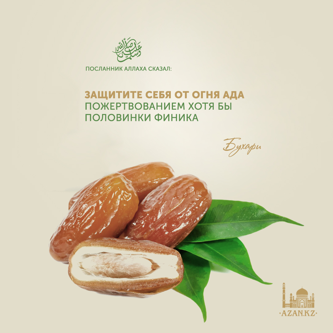 «Защитите себя от огня ада пожертвованием хотя бы половинки финика» (Бухари).